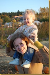Last Saturday, after our annual church Harvest Fest, we took Sophia to pick out pumpkins at a local patch. It was lots of fun. I think Sophia particularly enjoyed picking out her own pint-sized pumpkin. It took her nearly five minutes to decide which one she wanted!